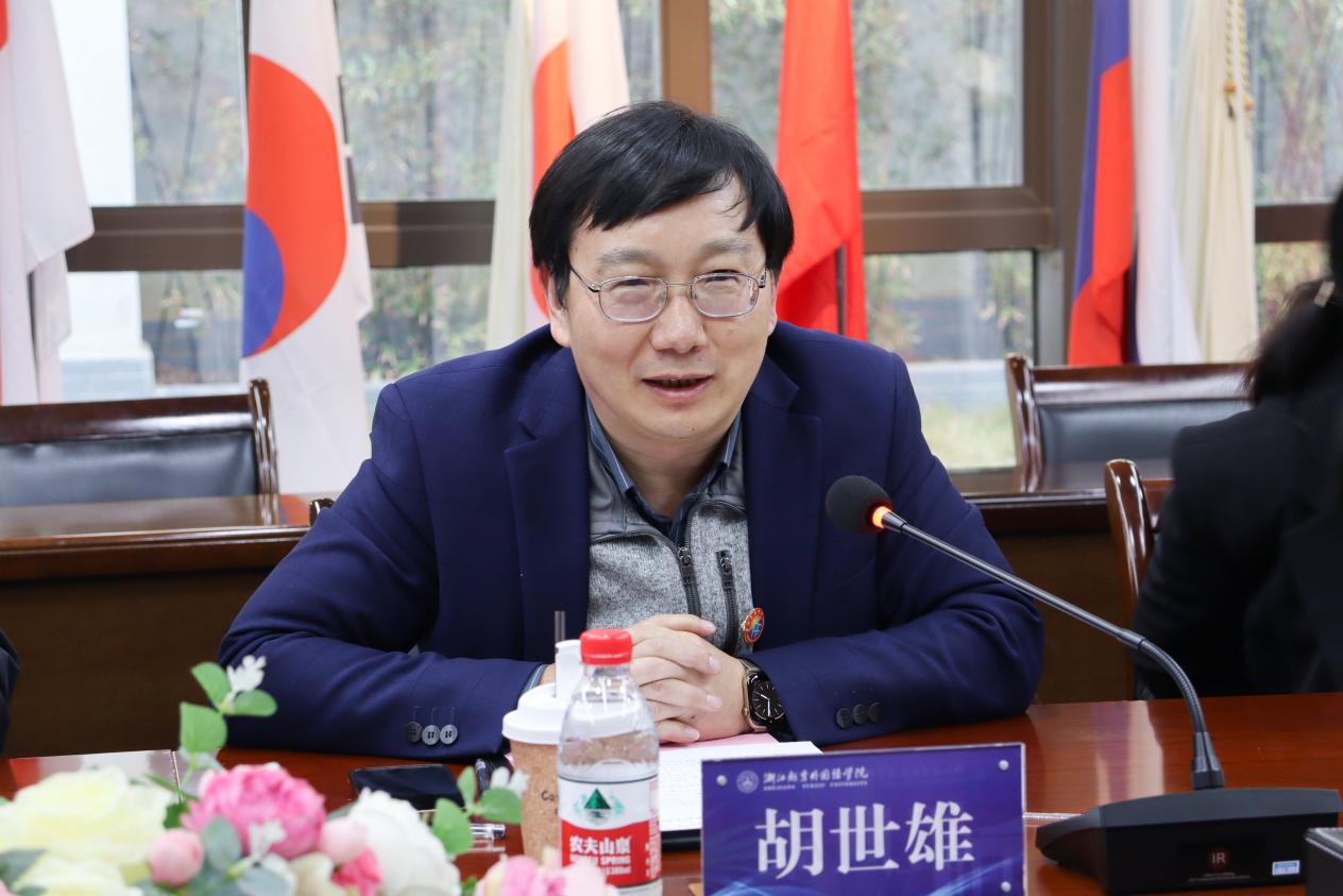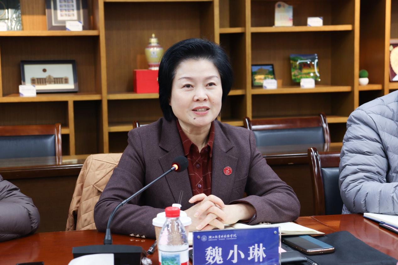 魏小琳常务副校长以“三种精神”为脉络介绍了我校的发展历程与办学特色:一是新和成集团投资办学、坚持非营利性发展的“社会责任与教育情怀”;二是在办学层次提升、中外合作办学机构获批、科研突破等方面体现的“敢为人先的创业精神”;三是在跨境电商产教融合、国际化拓展、异地教学探索等方面展现的“勇于担当的创新精神”。