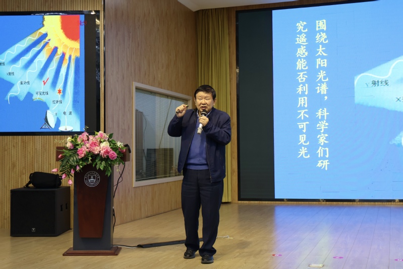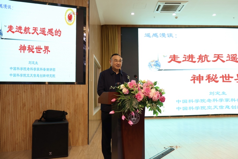 近日,中国科学院老科学家科普演讲团副团长、中国科学院空天信息创新研究院研究员、中国科学院大学博士生导师刘定生教授应邀来校,为我校师生作了题为《走进航天遥感的神秘世界》的精彩科普报告。会议由常务副校长郭杰主持,校长助理朱新福及科研处、团委等部门和学院百余名师生现场聆听了报告。